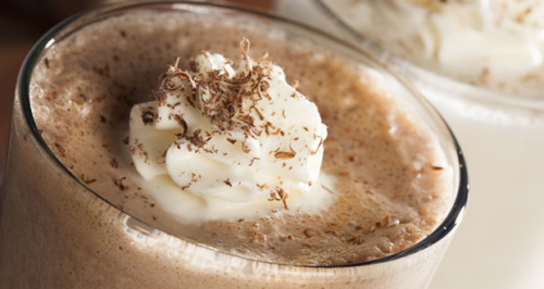 Es una receta rendidora, rápida y riquísima. Para prepararla se necesita de 1 litro de leche, 4 cucharadas soperas del café soluble que deseen, 1 vaina de vainilla, 2 copas medianas de licor de naranjas, 200 gramos de azúcar y 4 cubitos de hielo. Se comienza por disolver bien el azúcar en la leche hirviendo, y se sumerge la vainilla. Una vez fío, se lleva a la heladera. Se retira al momento de servir previa batida con mixer o licuadora, el hielo y el licor de naranjas. Cuando esté bien batido se vierte en copas alargadas y a cada una se la cubre con una capa delgada del café en polvo. Resulta un postre o merienda fabuloso con un sabor intenso combinando el cítrico con café.