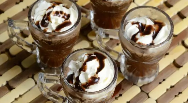 Los fanáticos del chocolate no se pueden perder esta receta: licuar una taza de espresso frío con dos barras de chocolate semiamargo y hielo, se sirve con un copo de crema y chispitas de chocolate.